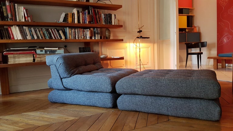 This beautiful pair of roche bobois mah jong elements by hans hopfer are from the earlier years of the design in the 1970s, before they created the missoni and jean paul gaultier col.